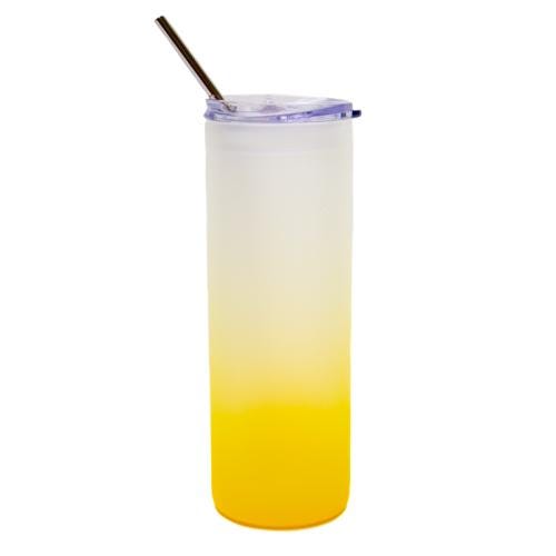Gorgeous Glass Skinny frosted tumblers come with lid and straw, but can also be used without just as an open cup.
