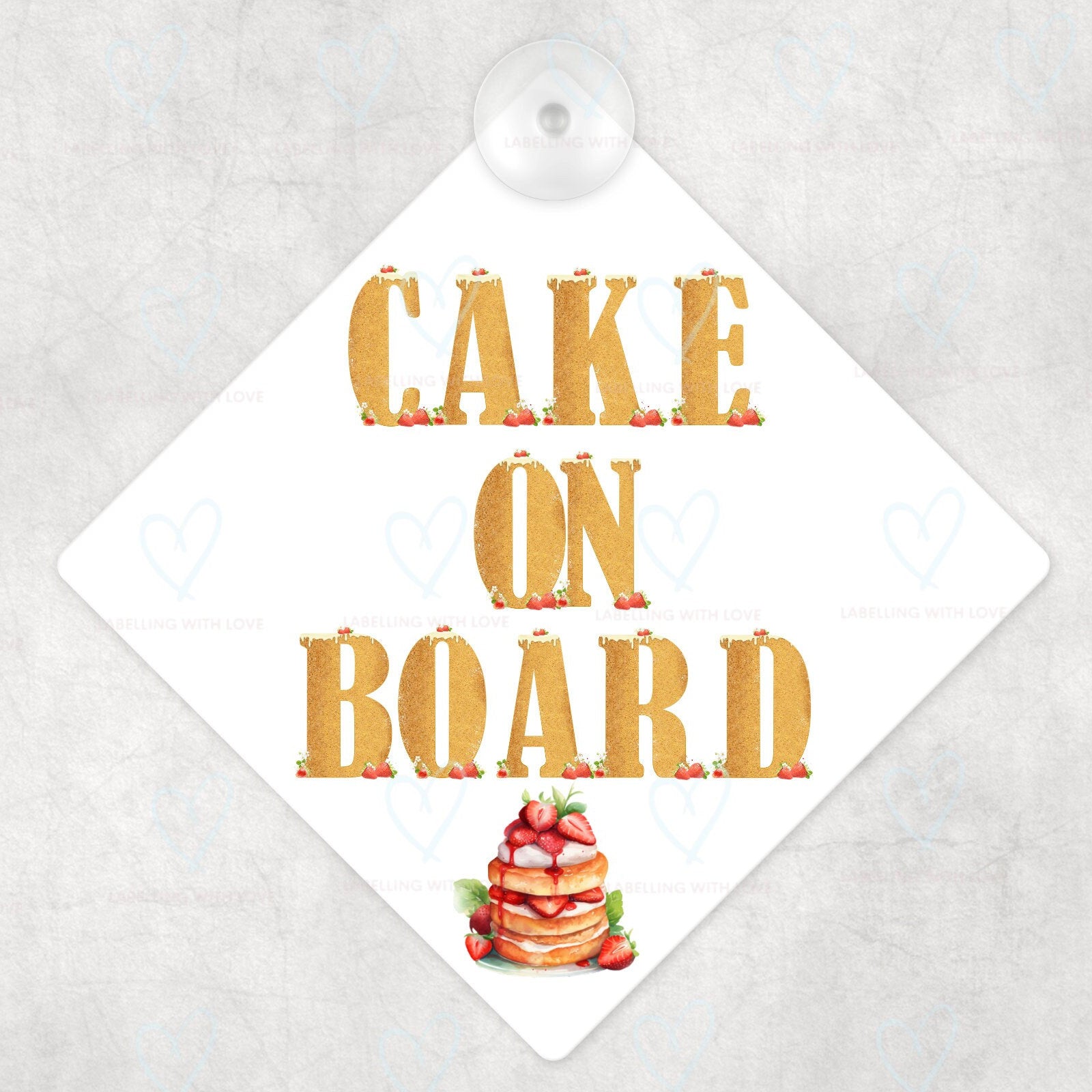 Cake on board sign to put in your car when carrying a cake so people are aware of the fragile goods being carried.