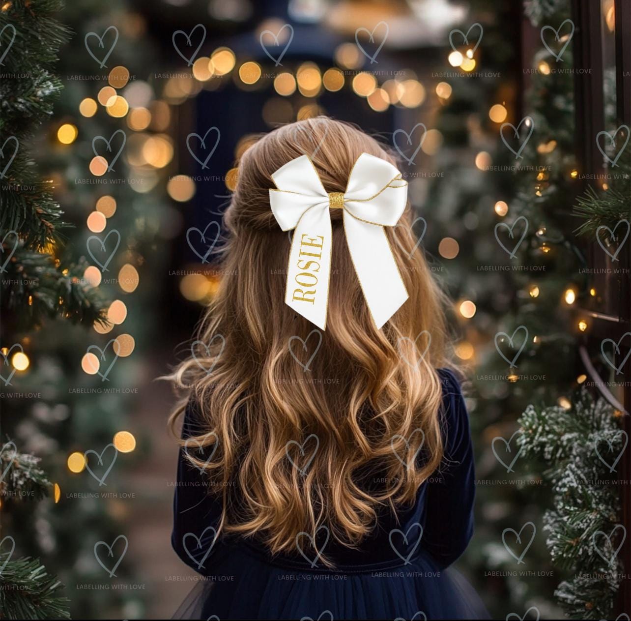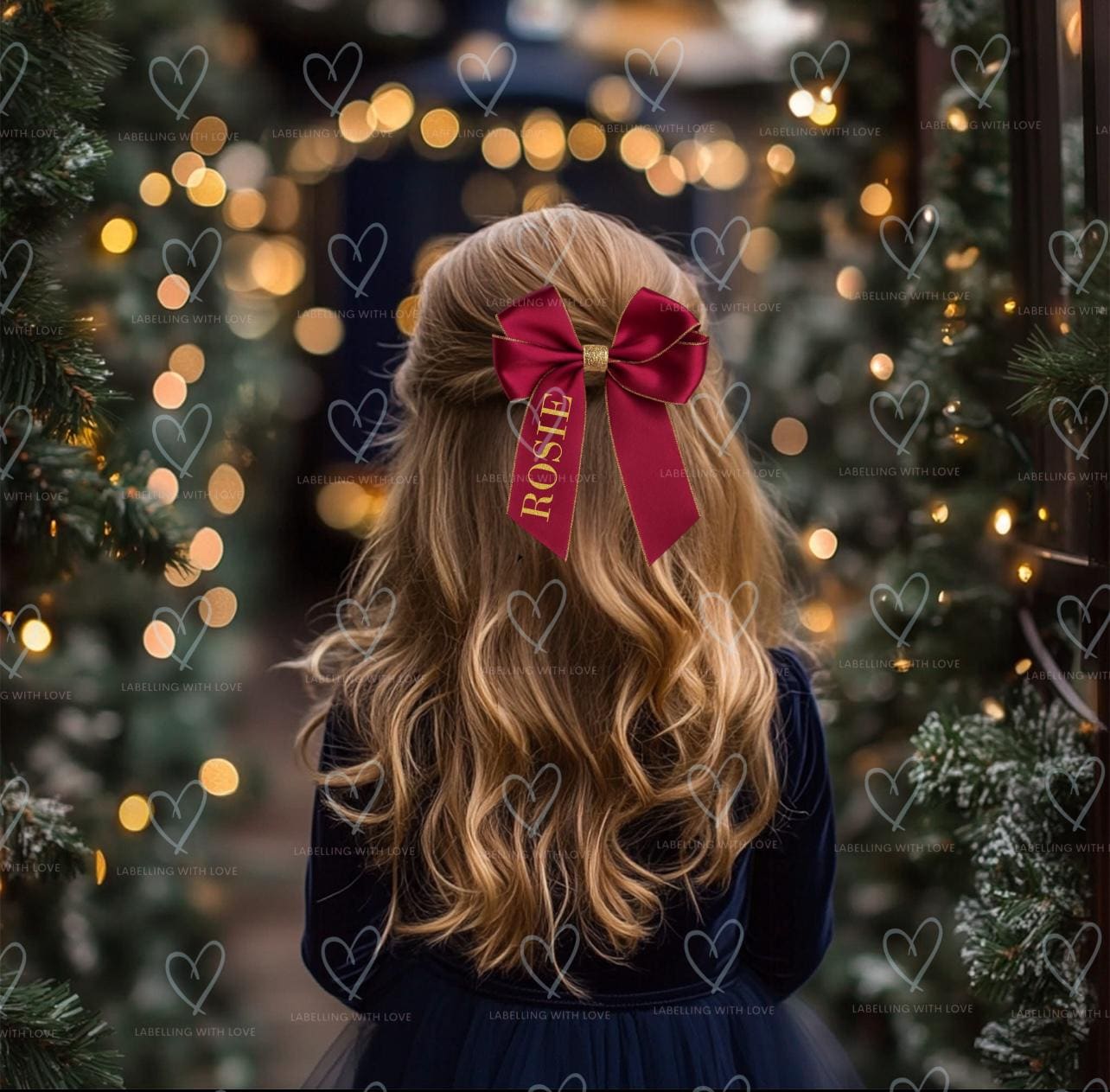 Personalised Hair Bow | Childrens Christmas Bow Hair Clip | Hair Accessories | Personalised Ribbon | Cute gift for Children