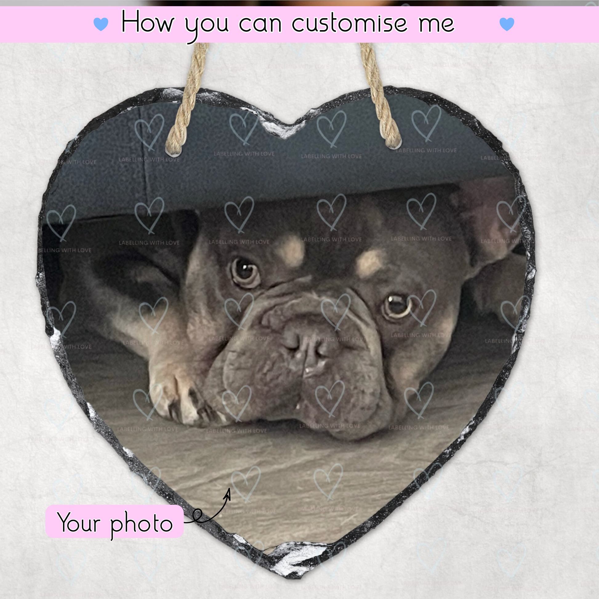 Personalised Heart Slate Sign | Custom Photo Hanging Slate Heart| Pet Memorial Gift | Dog Cat Photo Gift | Home Decor | Unique Keepsake Gift